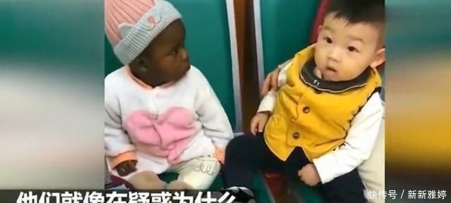 中国男孩医院偶遇黑人宝宝,俩娃互相打量的一