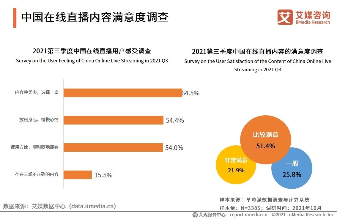 2021Q3中国在线直播行业现状、内容满意度及发展