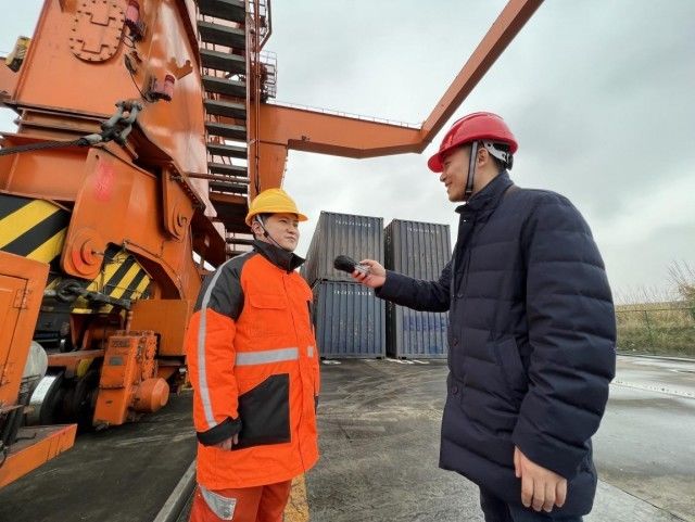 采访结束 郑雨双又将登上龙门吊工作